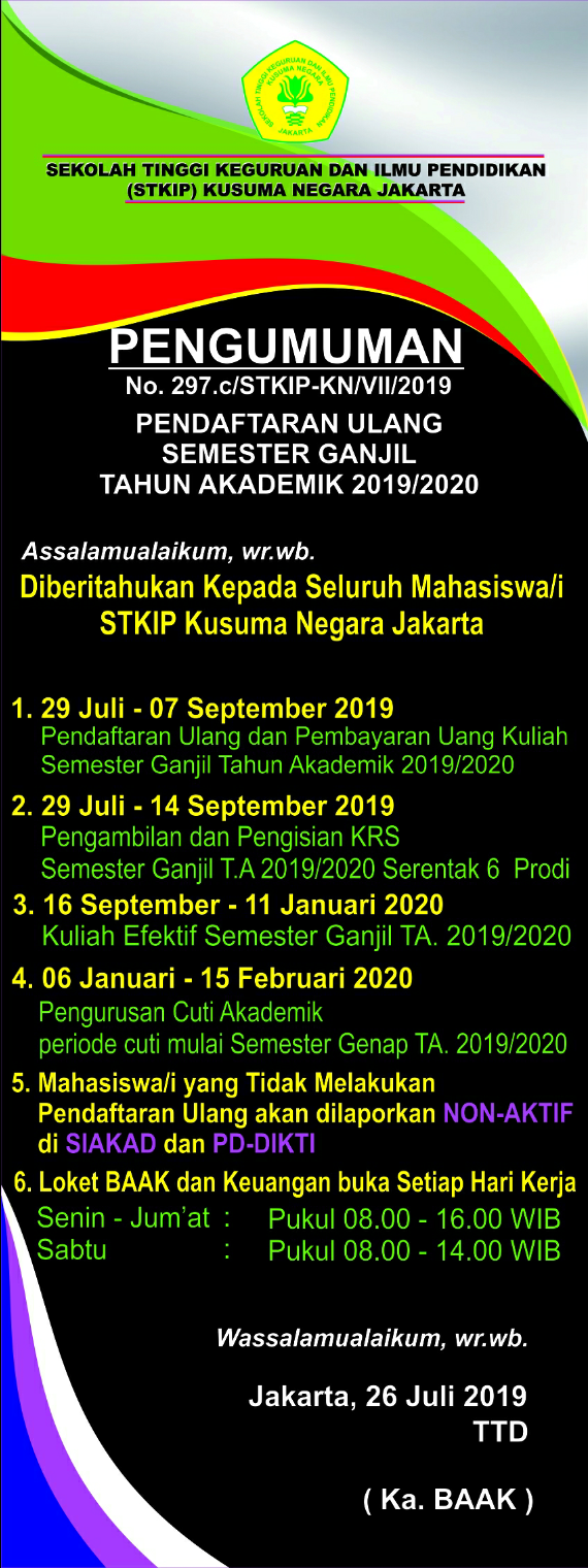 Pendaftaran Ulang Semester Ganjil Tahun Akademik 2019/2020