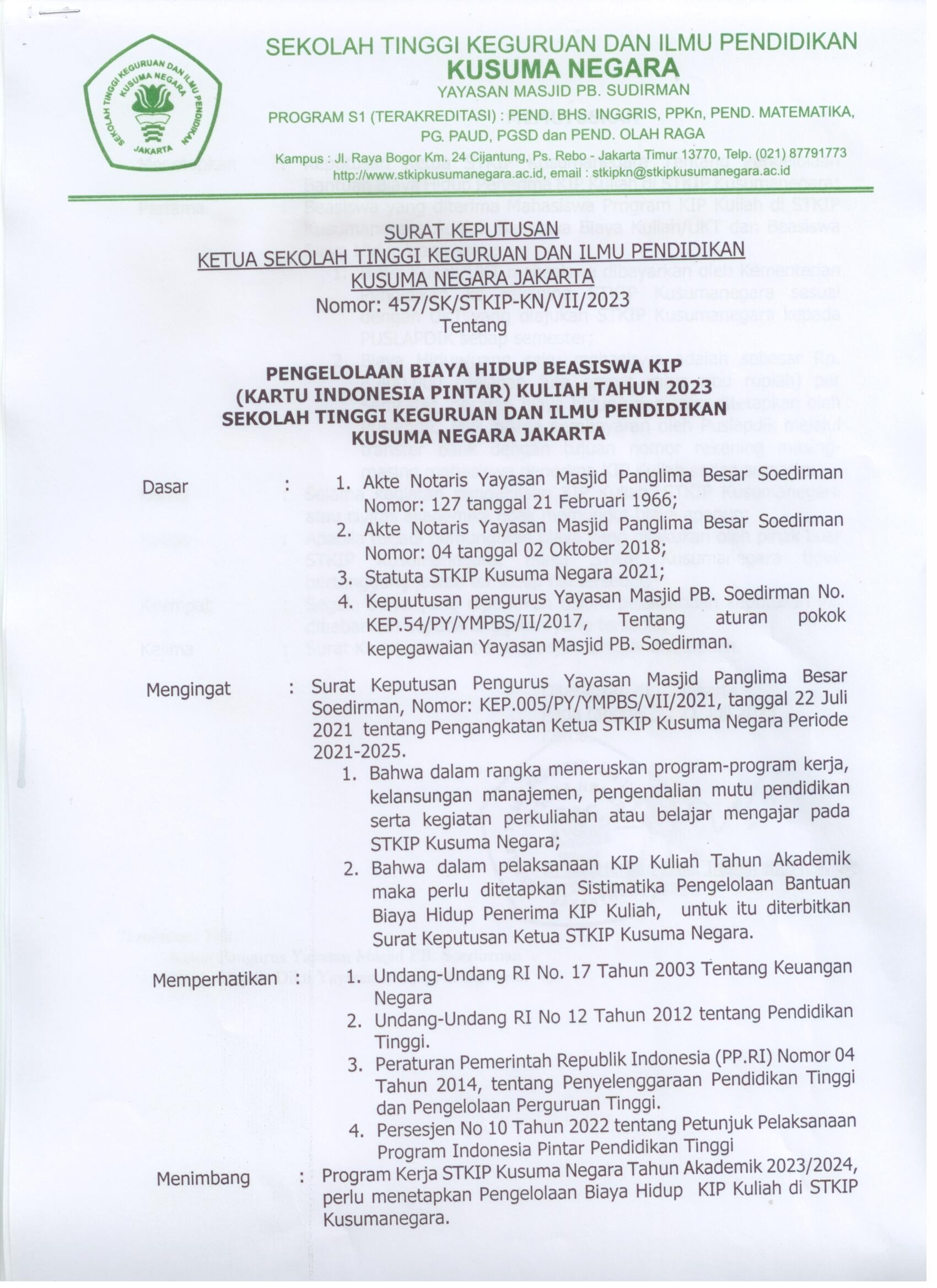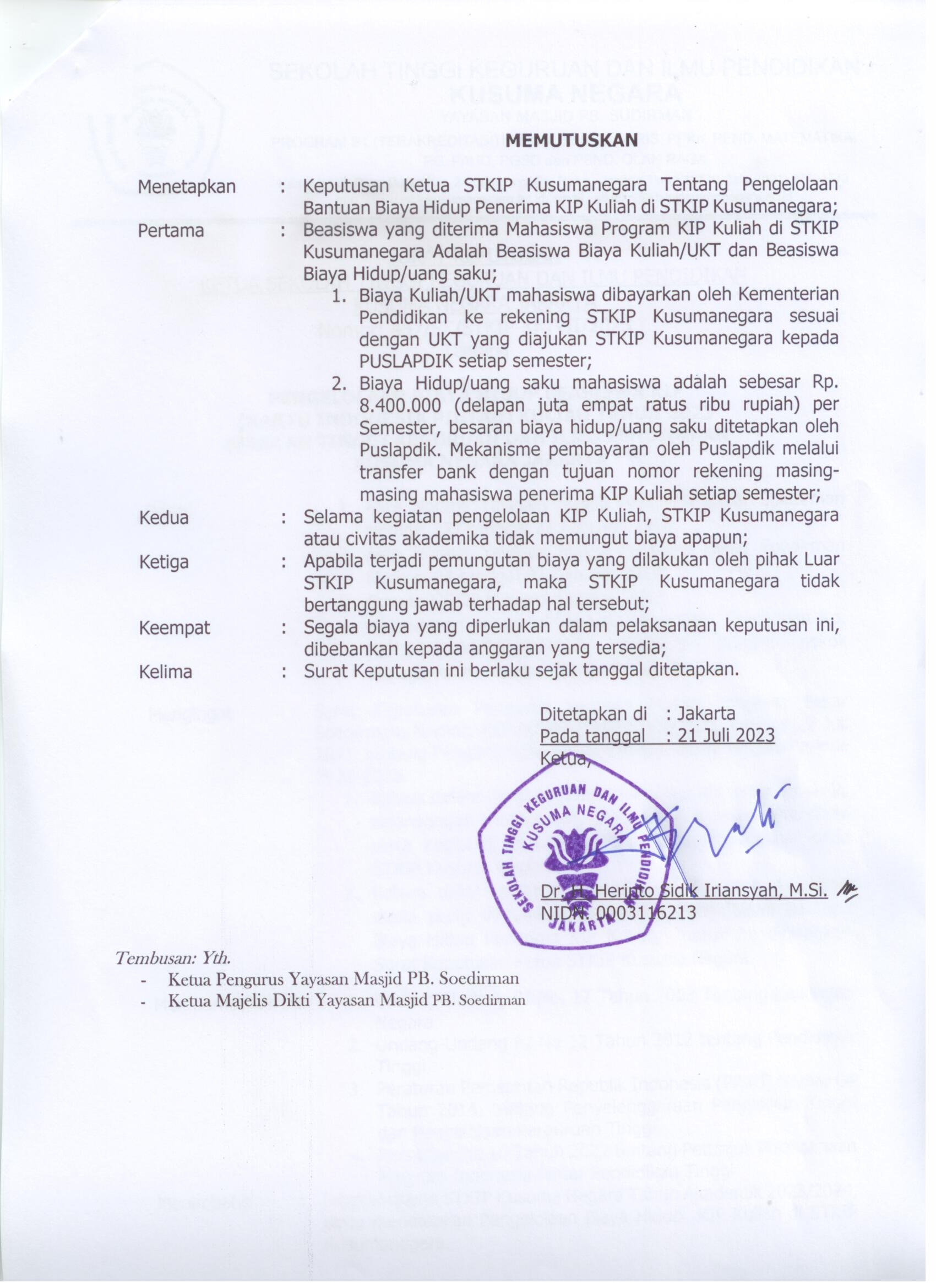 Pengelolaan Biaya Hidup Beasiswa KIP (Kartu Indonesia Pintar) Kuliah Tahun 2023