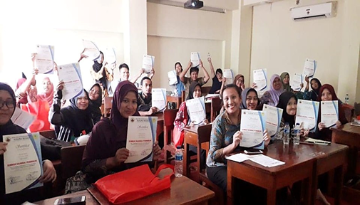 Senyum bahagia saat terima sertifikat sebagai pemakalah