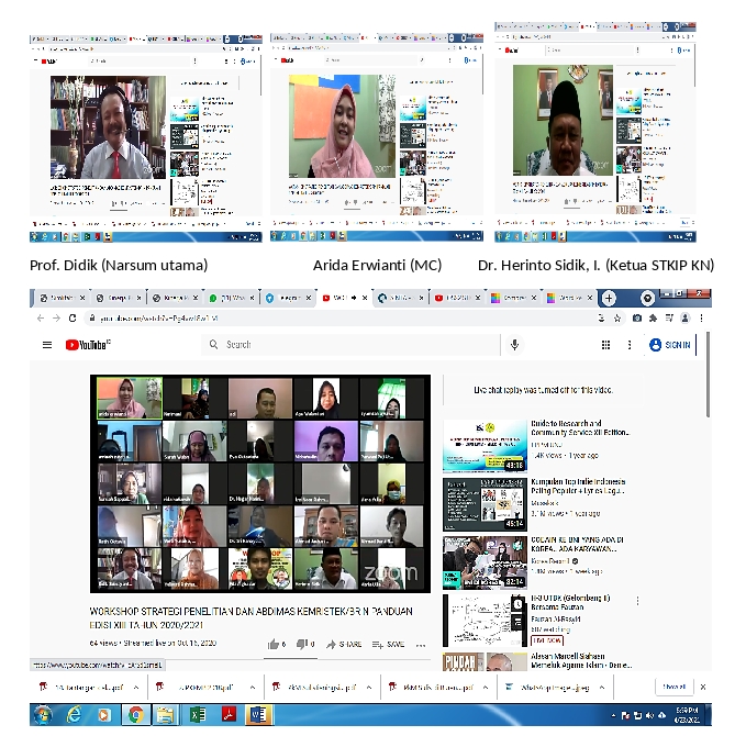 Kegiatan Webinar yang diselenggarakan oleh LPPM STKIP Kusuma Negara ini bertujuan untuk membekali dosen-dosen yang akan mengajukan proposal penelitian dan pengabdian kepada masyarakat pada Kompetisi Nasional Kemenristekdikti pendanaan tahun 2021. Seminar virtual pada tanggal 16 Oktober 2020 diikuti oleh dosen STKIP KN dan diluar STKIP KN ini sukses karena Prof. Dr. Ir. Didik Sulistyanto sebagai narasumber dalam menyampaikan materi sangat kompeten dibidangnya. Beliau adalah guru besar di Universitas Jember sekaligus sebagai Reviewer Riset Nasional.