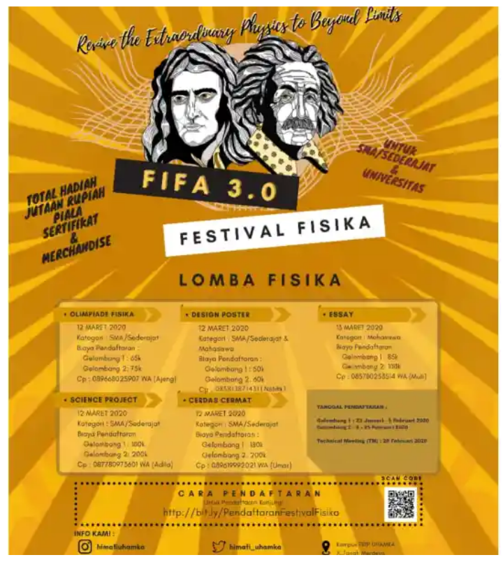 Himpunan Mahasiswa Pendidikan Fisika Universitas Muhammadiyah Prof. Dr. Hamka akan mengadakan “Festival Fisika FIFA 3.0” yang akan dilaksanakan pada