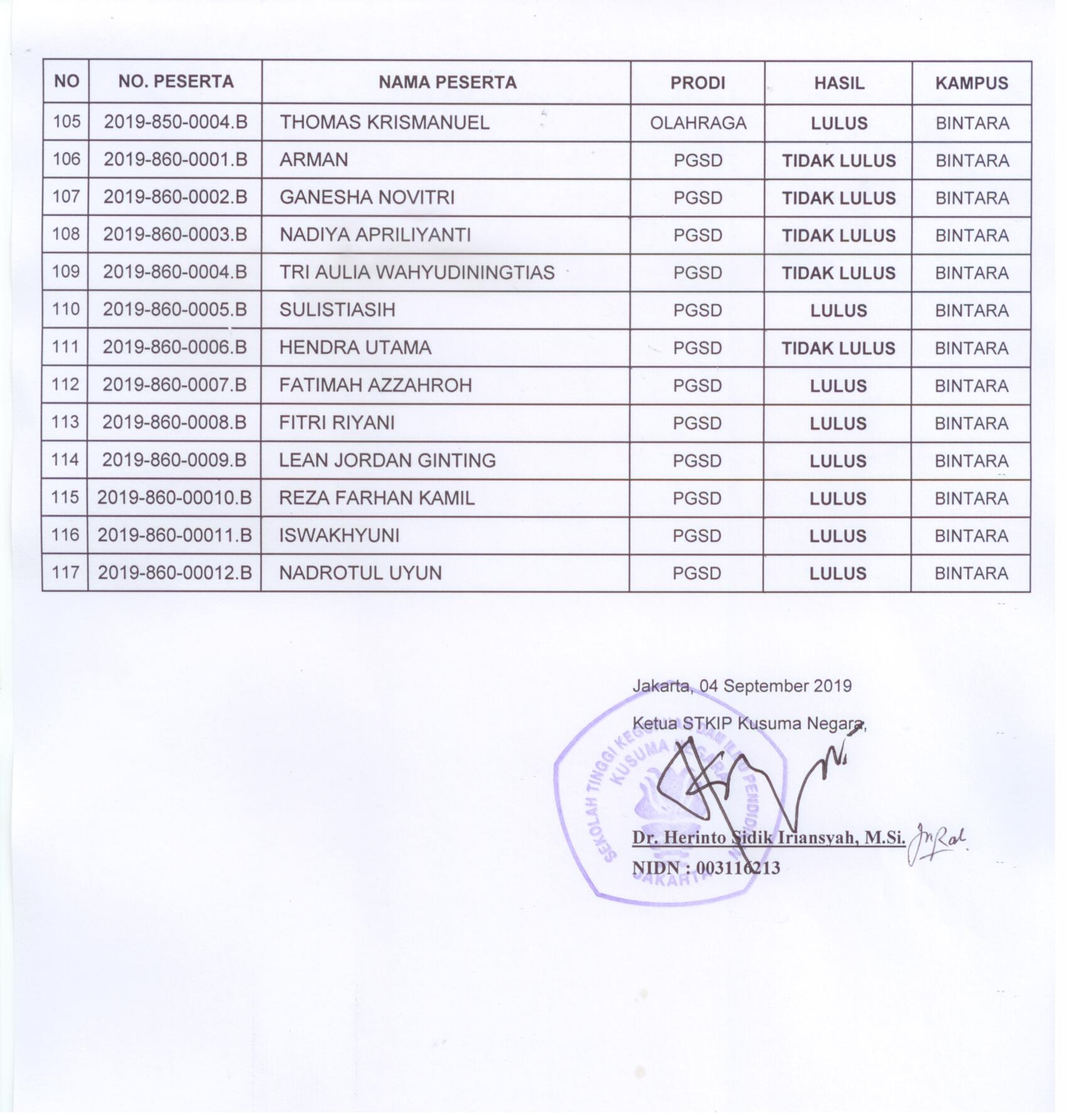 Hasil Seleksi Masuk Tes Potensi Akademik (TPA) Gelombang III Penerimaan Mahasiswa Baru Semester Ganjil Tahun Akademik 2019/2020 Leave a Comment / Berita Kampus, Panitia PMB, Pengumuman / By admin