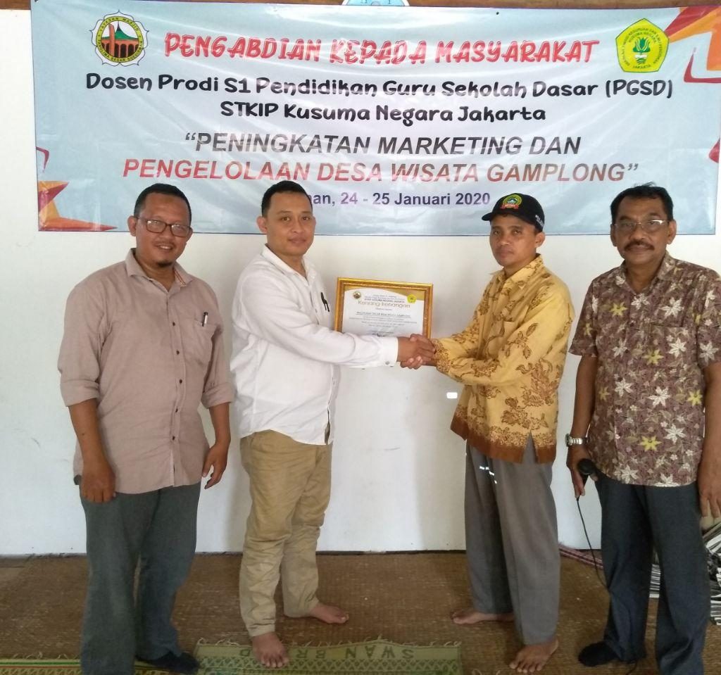 Selain kegiatan KKL mahasiswa, para dosen Prodi S1 PGSD STKIP Kusuma Negara berpartisipasi dalam kegiatan pengabdian masyarakat. Pengabdian masyarakat yang dilaksanakan dosen di Desa Wisata Gamplong dengan Tema Peningkatan Marketing dan Pengelolaan Desa Wisata Gamplong Tanggal 24 s.d 25 Januari 2020. Sasaran peserta adalah para pengelola Paguyuban Tegar Desa Wisata Gamplong. Antusiasme pengelola paguyuban sangat luarbiasa, karena Para Dosen PGSD memberikan praktik secara langsuung dan tidak hanya memberikan teorinya saja. Adapun materi kegiatan tersebut adalah Digital Marketing, Pengelolaan manajemen SDM, Pengelolaan manajemen keuangan, Pembuatan program desawisata, Ceremonial penyambutan tamu, Pengetahuan dan keterampilan dalam penguasaan Bahasa Inggris praktis bagi pemandu desa wisata , dan Games untuk tamu rombongan.