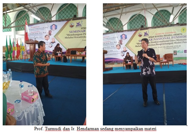 Seminar yang diselenggarakan oleh STKIP Kusuma Negara pada tanggal 06 Oktober 2019 adalah Seminar Pendidikan tingkat Nasional. Seminar tahun ini diberi nama SemNara 2019 (Seminar Kusuma Negara) merupakan seminar yang dilakukan dengan teknik sesi pertama adalah presentasi oleh Keynote Speaker dan sesi kedua adalah presentasi paralel (perprodi dana tau dua prodi) dalam satu ruangan. Keynote speaker yang diundang dari luar STKIP KN adalah: (1) Prof. Turmudi, M.Ed. M.Sc. Ph.D, guru besar prodi pendidikan matematika UPI dan beliau menjabat Direktur UPI Kampus Purwakarta untuk periode 2019-2023. (2) Ir. Hendarman, M.Sc. Ph.D, Kepala Pusat Analisis Sinkronisasi Kebijakan Kemendikbud dan Dosen UNPAK Bogor pada prodi Manajemen. Sedangkan Keynote Speaker dari dalam adalah dua orang Dosen Tetap Yayasan yang memiliki kriteria: Lulus S3 (Doktor) mulai tahun 2017, homebase di STKIP KN, ber-NIDN dan berjenjang kepangkatan dengan tujuan untuk mempromosikan SDM yang dimiliki institusi (STKIP KN) agar diketahui masyarakat. Karena jika bukan institusi sendiri yang memulai dan memfasilitasi, tidak mungkin PT lain akan mengenalnya dan mengetahui potensi Dosen yang dimiliki oleh STKIP KN. Untuk tahun 2019 ini, Dr. Audi Yundayani, M.Pd (Dosen Prodi pendidikan Bahasa Inggris) dan Dr. Andi Musda Mappapoleonro, M.Si (Dosen Prodi PAUD) dipercaya sebagai narasumber dari STKIP KN.